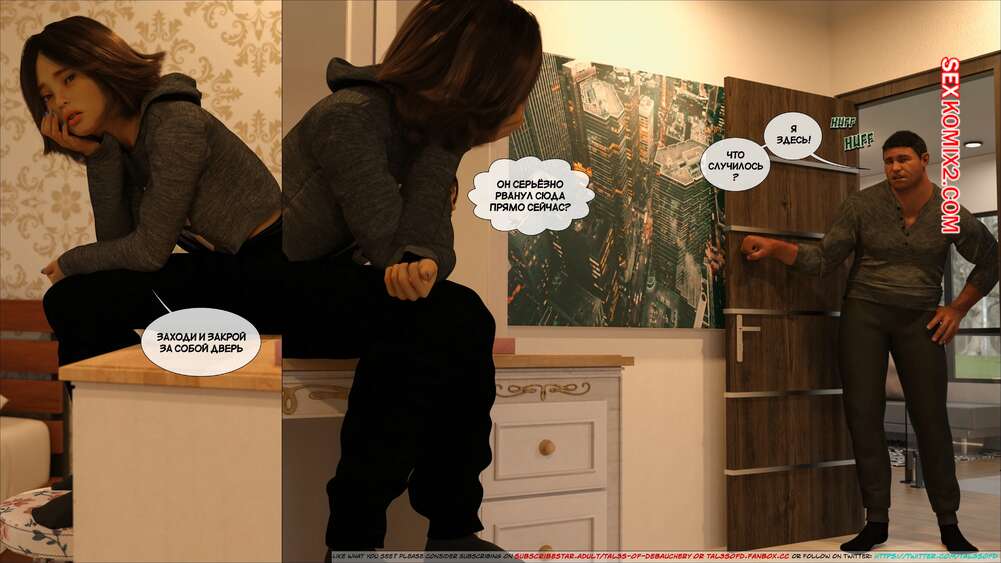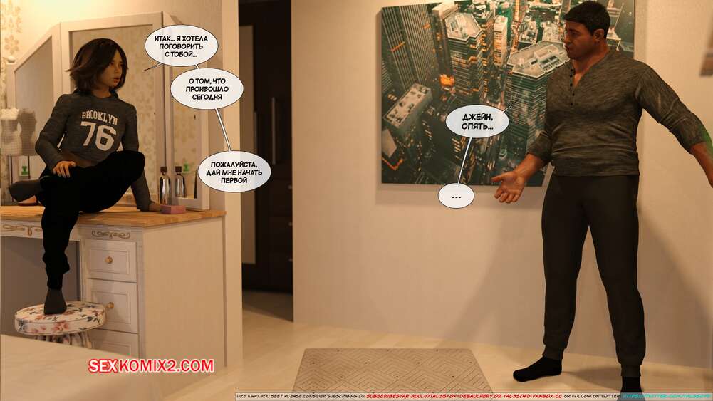 Порно комикс Запретные плоды. Часть 6. Forbidden Fruits. Tal3s of Debauchery Красотка позвала брата к себе в комнату, желая соблазнить его и повеселиться. Девушка стала целовать братика, после чего он снял с нее трусики и хорошенько выебал.